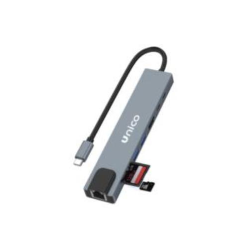 ADATTATORE HUB UNICO USB C 8 IN 1 HDTV4K PD 100W 100W TF RJ45 2USB 2USBC