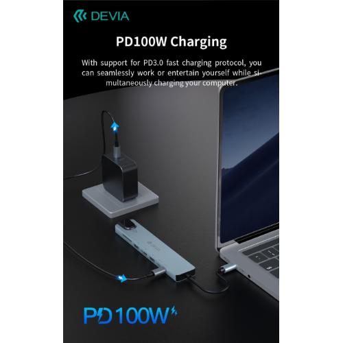 HUB Tipo-C 8 in 1 PD 100W RJ45 Usb 3.1 HDMI TF Card SD