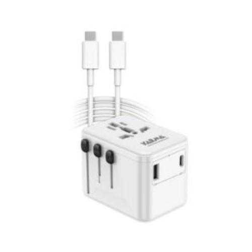 Adattatore da viaggio dotato di una multipresa e di vari tipi di spina che si adattano alle prese di diversi paesi. Grazie a un dispositivo di sicurezza solo la spina utilizzata viene alimentata. Presenta inoltre una porta USB-A e una porta Type-C per l’alimentazione o la ricarica di dispositivi come telefoni o tablet. Nella confezione è incluso un cavo Type-C da 1,5mt