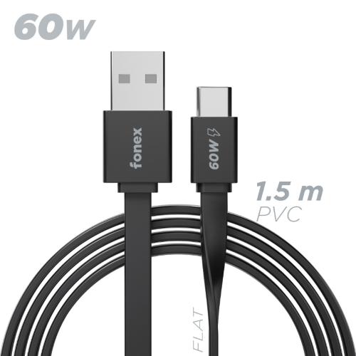CAVO DATI/RICARICA USB / USB TIPO C PIATTO 1.5MT 60W FONEX NERO